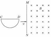 7.(09年山卷)21.如图所示,一导线弯成半径为a的半圆形闭合回路。虚线MN右侧有磁感应强度为B的匀强磁场。方向垂直于回路所在的平面。回路以速度v向右匀速进入磁场,直径CD始络与MN垂直。从D点到达边界开始到C点进入磁场为止,下列结论正确的是 ( ACD )
