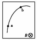 (08广东卷)9.带电粒子进入云室会使云室中的气体电离,从而显示其运动轨迹.图是在有匀强磁场云室中观察到的粒子的轨迹,a和b是轨迹上的两点,匀强磁场B垂直纸面向里.该粒子在运动时,其质量和电量不变,而动能逐渐减少,下列说法正确的是(AC)