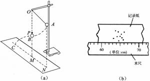 如图(a)中,悬点正下方P点处放有水平放置炽热的电热丝,当悬线摆至电热丝处时能轻易被烧断,小球由于惯性向前飞出作平抛运动.在地面上放上白纸,上面覆盖着复写纸,当小球落在复写纸上时,会在下面白纸上留下痕迹.用重锤线确定出A、B点的投影点N、M.重复实验10次(小球每一次都从同一点由静止释放),球的落点痕迹如图(b)所示,图中米尺水平放置,零刻度线与M点对齐.用米尺量出AN的高度h1、BM的高度h2,算出A、B两点的竖直距离,再量出M、C之间的距离x,即可验证机械能守恒定律.已知重力加速度为g,小球的质量为m.