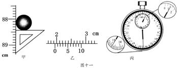 (湖北省八校2008届第一次联考)在《用单摆测重力加速度》的实验中,先用刻度尺测出悬点到小球底端的长度如图甲所示,然后用游标卡尺测出小球的直径如图乙所示,再用停表测出单摆完成40次全振动所用的时间如图丙所示。则测出的小球直径为___________cm,单摆的周期为___________s,单摆的摆长为________________cm 。