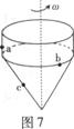12. (09·广东文科基础·57) 图7所示是一个玩具陀螺。a、b和c是陀螺上的三个点。当陀螺绕垂直于地面的轴线以角速度ω稳定旋转时,下列表述正确的是 ( B )