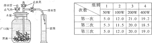实验材料和用具:100mL量筒、50W、100W、200W和400W的台灯、冷开水、NaHCO3黑藻等。