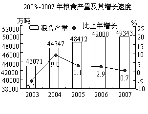 16.(2008安徽)如图是我国2003~2007年粮食产量及其增长速度的统计图,下列说法不正确的是( )