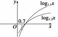 如图所示两图象与x=0.7相交可知log1.10.7<log1.20.7.