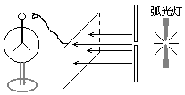 如图,当弧光灯发出的光经一狭缝后,在锌板上形成明暗相间的条纹,同时与锌板相连的验电器铝箔有张角,则该实验