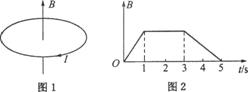 例4.在竖直向上的匀强磁场中,水平放置一个不变形的单匝金属圆线圈,规定线圈中感应电流的正方向如图1所示.当磁场的磁感应强度B随时间t如图2变化时,能正确表示线圈中感应电动势E变化的是 ( )