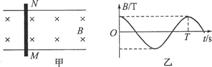 1.如图甲所示,电流恒定的通电直导线MN,垂直平放在两条相互平行的水平光滑长导轨上电流方向由M指向N,在两导轨间存在着垂直纸面向里的磁场,当t=0时导线恰好静止,若磁感应强度B按如图乙所示的余弦规律变化,下列说法正确的是 ( )