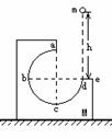 如右图,M为固定在桌面上的L形木块,abcd为3/4圆周的光滑轨道,a为轨道的最高点,de面水平且有一定长度。今将质量为m的小球在d点的正上方高h处释放,让其自由下落到d处切入轨道运动,则: