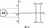 ,后段路面与冰块的动摩擦因数很小可忽略不计.为防止仪器室受损,又由于场地限制他只能在前一段中,逆着冰块滑来的方向与水平成370角斜向下用F=875N的力推挡冰块,如图(b)所示,此时冰块的速度为υ0=6.00m/s,在第一路段沿直线滑过4.00m后,到达两段的分界线.以分界线为y轴,冰块的运动方向为x轴建立平面直角坐标系.冰块进入光滑场地后,他再沿垂直υ0的方向(y轴正方向),用相同大小的力水平侧推,取g=l0m/s。,求: ①冰块滑到分界线时的速度大小υ1 ②若仪器室D点坐标为(10.0m,5.00m);C点坐标为(10.0m,-5.00m),则此冰块能否碰到仪器室?试通过计算说明.