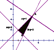 在可行域上平移,知在点B自目标函数取到最小值,解方程组