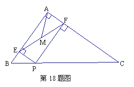 18.Rt△ABC中,∠BAC=90°,AB=3,AC=4,P为边BC上一动点,PE⊥AB于E,PF⊥AC![]()