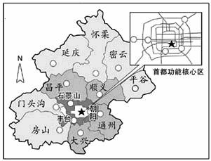 读北京中心城区与周围区县示意图,读图回答12-13题。