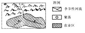读“我国新疆南部某地农业区示意图”(右图),据图回答21--22题。