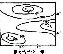 读我国东南部等高线图(见下图),根据图中内容回答23--24题。
