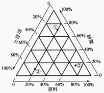 26.下左图表示某些工业部门对区位因素(仅考虑原料、能源、劳动力)的依赖程度。判断图中①、②、③代表的工业部门分别可能是 ( )