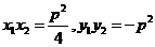 ,端点A、B到x轴距离之积为2m,以x轴为对称轴,过A、O、B三点作抛物线,则此抛物线方程为 (答: