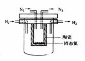 (4)1998年希腊亚里斯多德大学的Marnellos和Stoukides采用高质子导电性的SCY陶瓷(能传递H+),实现了高温常压下高转化率的电化学合成氨,其实验装置如图,阴极的电极反应式为______________。![]()