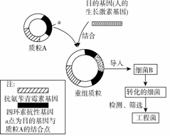 下图是将人的生长激素基因导入细菌B细胞内制造“工程菌”的示意图。已知细菌B细胞内不含质粒A,也不含质粒A上的基因。判断下列说法正确的是