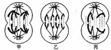 27.如图中甲、乙、丙三图分别表示某一高等动物的三个正在进行分裂的细胞,以下说法正确的是 ( )