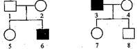 35.右下图为某种遗传病在两个家庭中的遗传系谱。已知1号个体没有该病的致病基因,如果5号和8号结婚,其下一代患该病的概率为 ( )