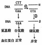 38.右图表示人类镰刀型细胞贫血症的病因,已知谷氨酸的密码