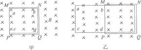 8.如图甲所示,空间存在着一个范围足够大的竖直向下的匀强磁场,磁场的磁感强度大小为B,边长为f的正方形金属框abcd(下简称方框)在光滑的水平地面上,其外侧套着一个与方框边长相同的U形金属框架MNPQ(下简称U形框)U形框与方框之间接触良好且无摩擦,两个金属杠每条边的质量均为m,每条边的电阻均为r.