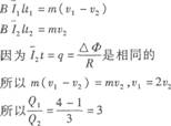 ,第二阶段产生的热量Q2=mv2/2,只要能找出v1和v2的关系就能找到答案,由动量定理可得