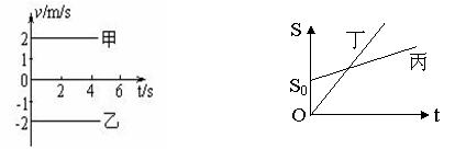 7、如图所示,左图为甲、乙两质点的v-t图象,右图是在同一直线上运动的物体丙、丁的位移图象。下列说法中正确是( )
