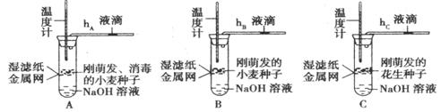 B.当种子中的有机物消耗完毕,温度计读数hC最高