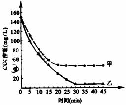 Ⅱ(4分)将长势相同、数量相等的甲、乙两个品种的大豆幼苗分别置于两个相同的密闭透明玻璃罩内,在光照、温度等相同且适宜的条件下培养,定时测定玻璃罩内的CO2含量,结果如图。据图回答: