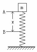 ,其中k为弹簧的劲度系数,x为弹簧的形变量。现有一轻质弹簧竖直放置在水平面上,如图,今将一质量为m的物块轻放在弹簧上,试求当物块下落到最低点时的加速度。