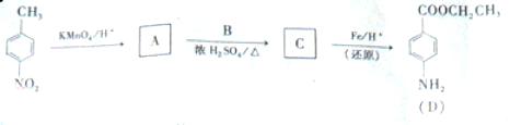 (1)流程图非常简单,生成A,即为KMnO4氧化苯环上的甲基而生成羧基。A→C,结合D产物,显然为A与乙醇在浓硫酸作用下发生酯化反应。最后将硝基还原即等氨基。