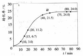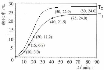 甲酸甲酯转化率在温度T1下随反应时间(t)的变化如下图: