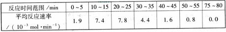(1)根据上述条件,计算不同时间范围内甲酸甲酯的平均反应速率,结果见下表: