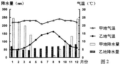 10.造成甲、乙两地降水量差异显著的主导因素是