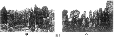 图3中,甲、乙两处景观所在地是我国著名旅游胜地。读图回答
