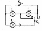 14.某课外活动小组用3只“3V 2W”的小灯泡和其他元件接成右图所示电路,研究串、并联电路特点,电源电压为3V.在实验中观察到的现象不可能的是 ( )