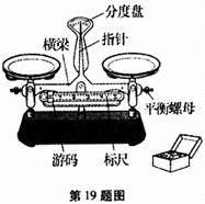 (8分)图示是我们实验用的天平,放在水平工作台面上,砝码盒中配备的砝码有50g、20g、10g、5S等。现有一质量待测的物体,估计其质量在30g左右。请将以下实验操作补充完整:
