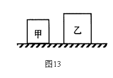 24、如图13所示,甲、乙两个质量相等的均匀实心正方体放在水平地面上,已知铜的密度大于铁的密度,可能使甲和乙对地面的压强相等的方法是 ( )