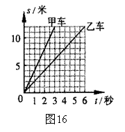 23、P、Q是同一直线上相距10m的两点,甲、乙两小车从P点出发向Q运动,它们运动的s-t图像如图16所示,由图像可知 ( )