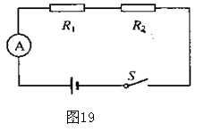 26、在图19所示的电路中,电源电压保持不变。闭合电键S,电路正常工作。经过一段时间,电流表突然无示数。若电路中只有一处故障,且只发生在电阻R1或R2上。