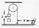 如图所示,绳子通过一个动滑轮悬挂一个重100N的物体,一人拉着绳端从A向B走过6m用了5s,物体被匀速提高2m,若不计绳与滑轮的摩擦和绳重,则下列说法正确的是………………………………………………………( )
