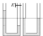 解:由于不考虑摩擦阻力,故整个水柱的机械能守恒。从初始状态到左右支管水面相平为止,相当于有长L/2的水柱由左管移到右管。系统的重力势能减少,动能增加。该过程中,整个水柱势能的减少量等效于高L/2的水柱降低L/2重力势能的减少。不妨设水柱总质量为8m,则