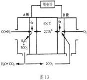20、(2010·山东实验中学模拟)熔融碳酸盐燃料电池(MCFS),发明于1889年。现有一个碳酸盐燃料电池,以一定比例Li2CO3和Na2CO3低熔混合物为电解质,操作温度为650℃,在此温度下以镍为催化剂,以煤气(CO、H2的体积比为1:1)直接作燃料,其工作原理如图所示。