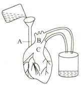 (1)如果把水从上腔静脉(A)灌入,则水从