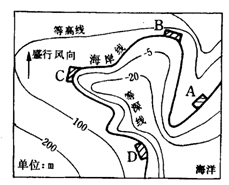 ⑷综合分析各种因素_________处建设港口最合适,(1分)