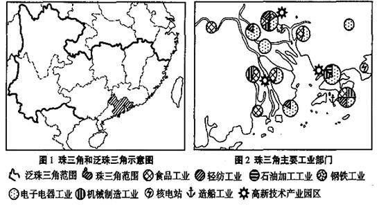 46.分析珠江三角洲经济区产业发展特点与条件的有关图文资料,并回答问题。(11分)