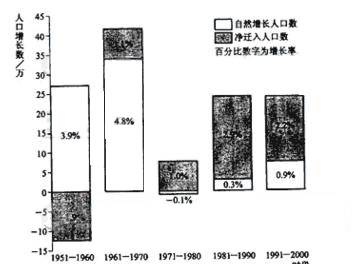 下图显示某国1951-2000年每10年的人口变化