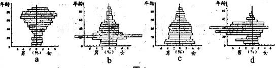 13.图7是新中国成立以来四个不同时期的人口年龄结构金字塔图,按时间先后排序正确的是