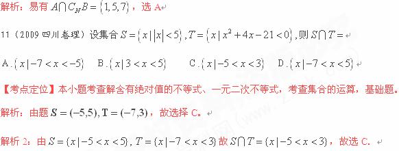 11(2009四川卷理)设集合
